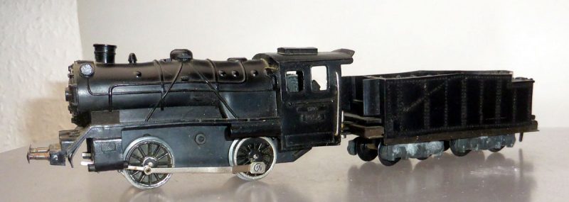Seit 1954 wurde auch die Schlepptenderlok mit 4,5 Volt-Batterieantrieb unter der Katalognummer 1000 A angeboten.